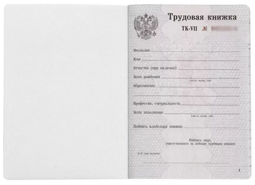 Трудовая книжка, действующего в настоящее время образца 2023 года