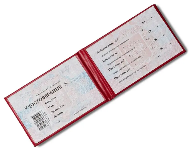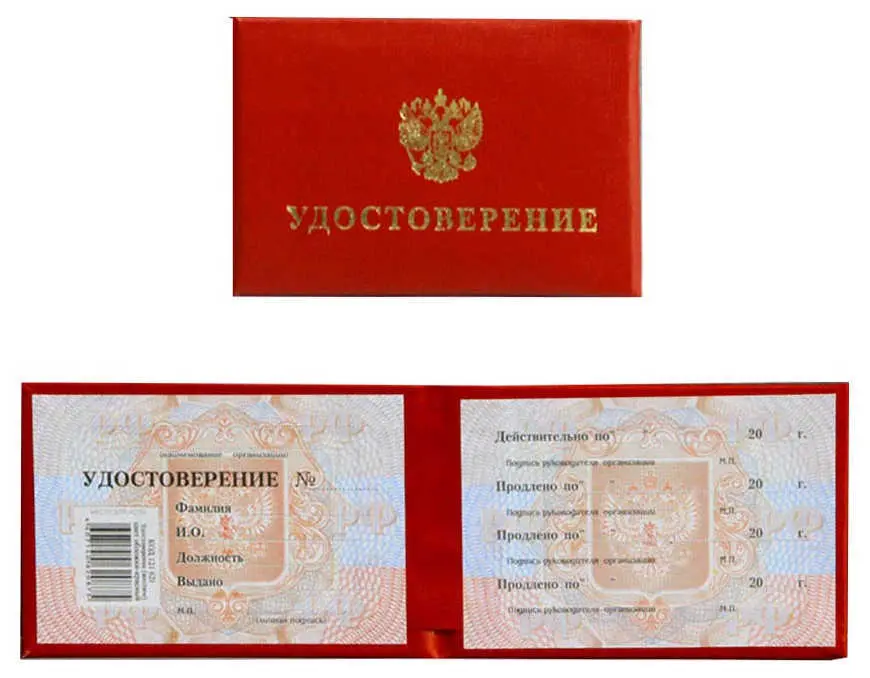 - Наименование изделия: Удостоверение