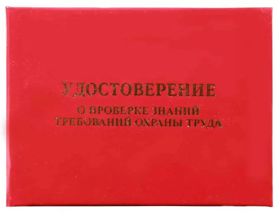 Удостоверение о проверке знаний требований охраны труда, жесткое, 105*80 мм, бумвинил красный, инд.блок