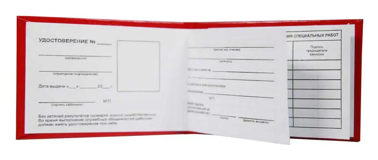 Удостоверение о проверке знаний правил работы в электроустановок, жесткое, 95*65 мм, бумвинил бордо