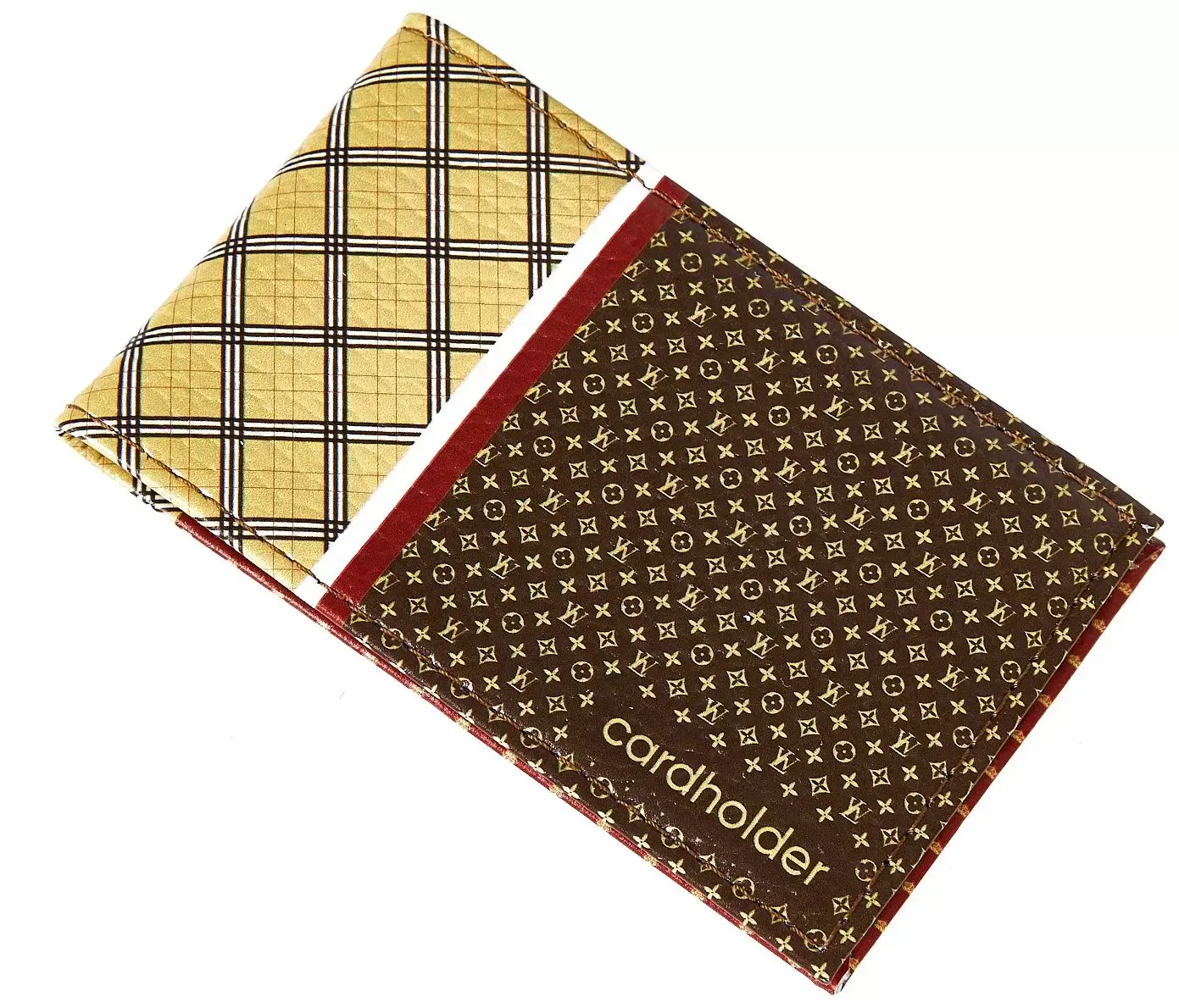 Визитница горизонтальная 1 секц. (18 карманов) из натуральной кожи, цветной рисунок по коже "Бренд"