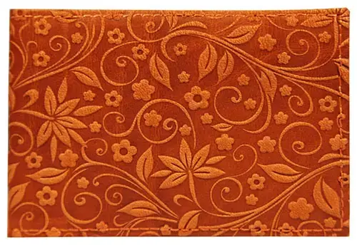 Визитница горизонтальная 1 секц. (18 карманов) из натуральной кожи, рыжая, тиснение "Флаверс"