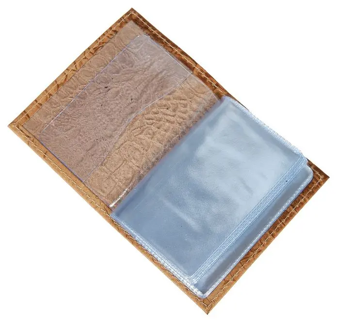 Визитница вертикальная 1 секц. (18 карманов) из натуральной кожи, бежевая, тиснение "Данди"