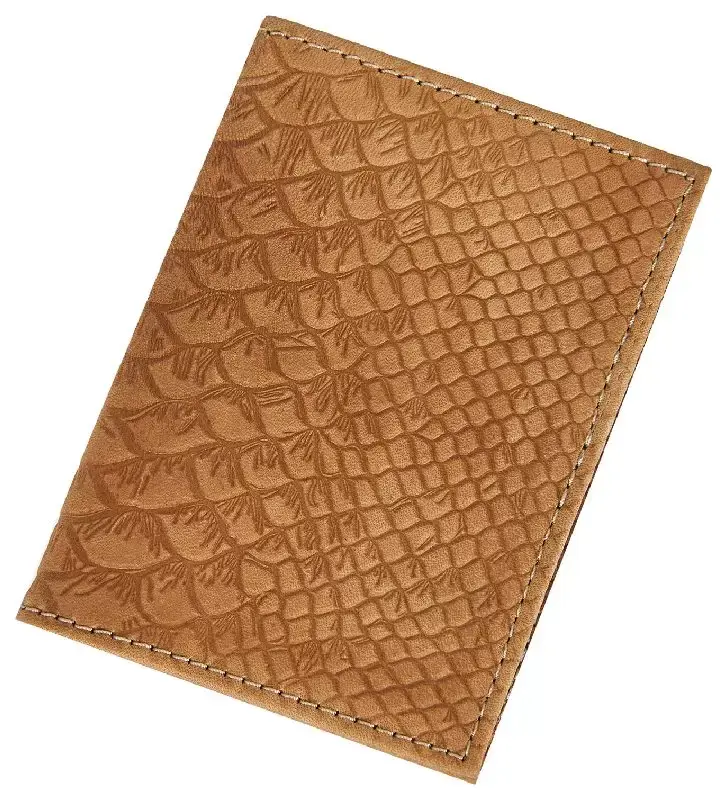 Визитница вертикальная 1 секц. (18 карманов) из натуральной кожи, бежевая, тиснение "Питон"