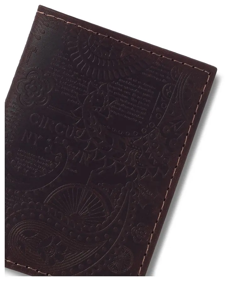 Визитница вертикальная 1 секц. (18 карманов) из натуральной кожи, коричневая, тиснение "Индийский орнамент"