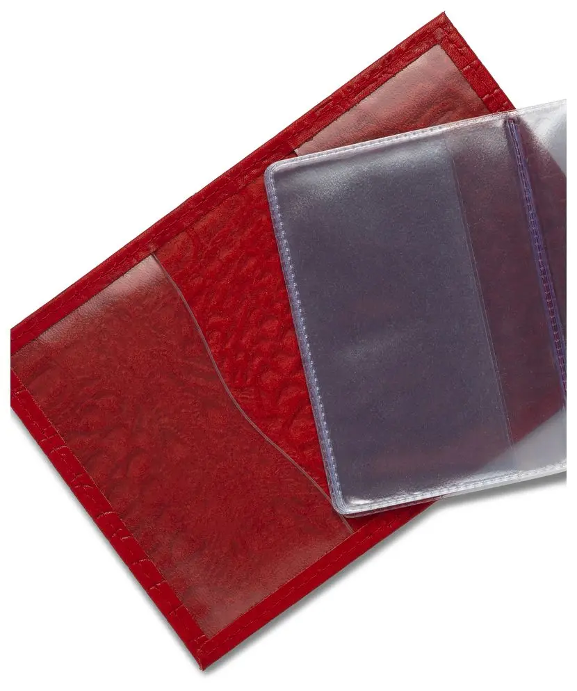 Визитница вертикальная 1 секц. (18 карманов) из натуральной кожи, красная, тиснение "Данди"