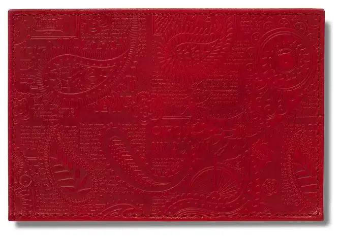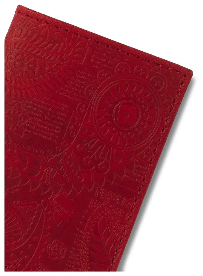 Визитница вертикальная 1 секц. (18 карманов) из натуральной кожи, красная, тиснение "Индийский орнамент"