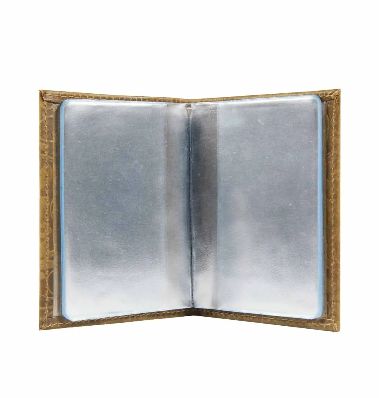 Визитница вертикальная 1 секц. (18 карманов) из натуральной кожи, оливковая, тиснение "Флаверс"