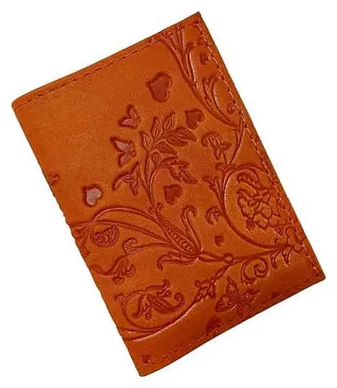 Визитница вертикальная 1 секц. (18 карманов) из натуральной кожи, рыжая, тиснение "Вдохновение"