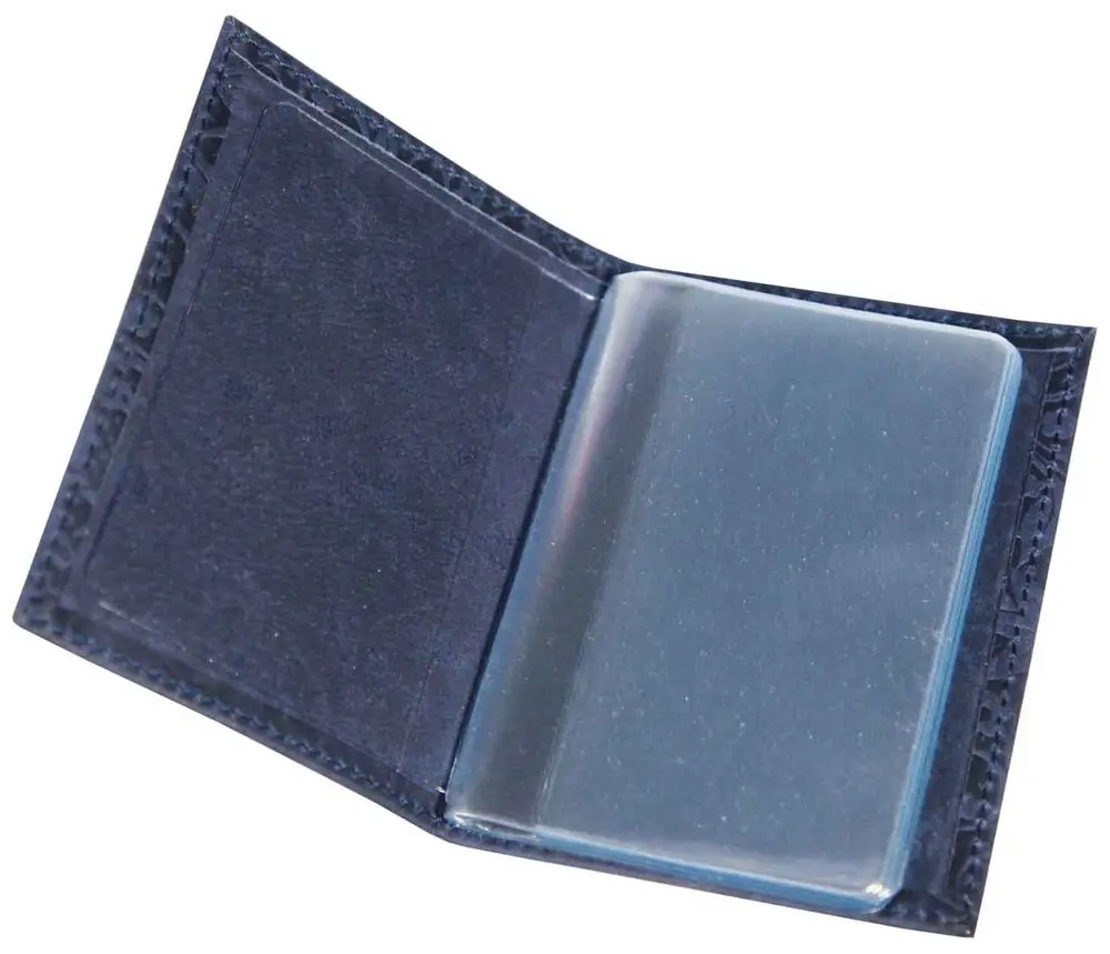 Визитница вертикальная 1 секц. (18 карманов) из натуральной кожи, синяя, тиснение "Флаверс"