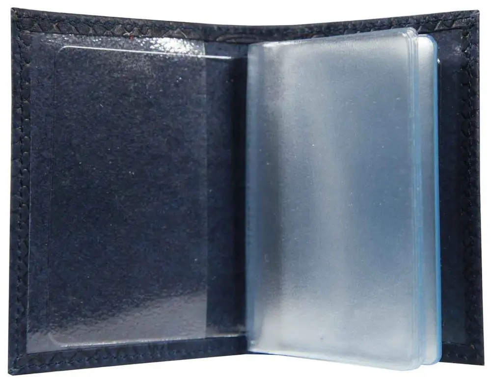Визитница вертикальная 1 секц. (18 карманов) из натуральной кожи, синяя, тиснение "Питон"