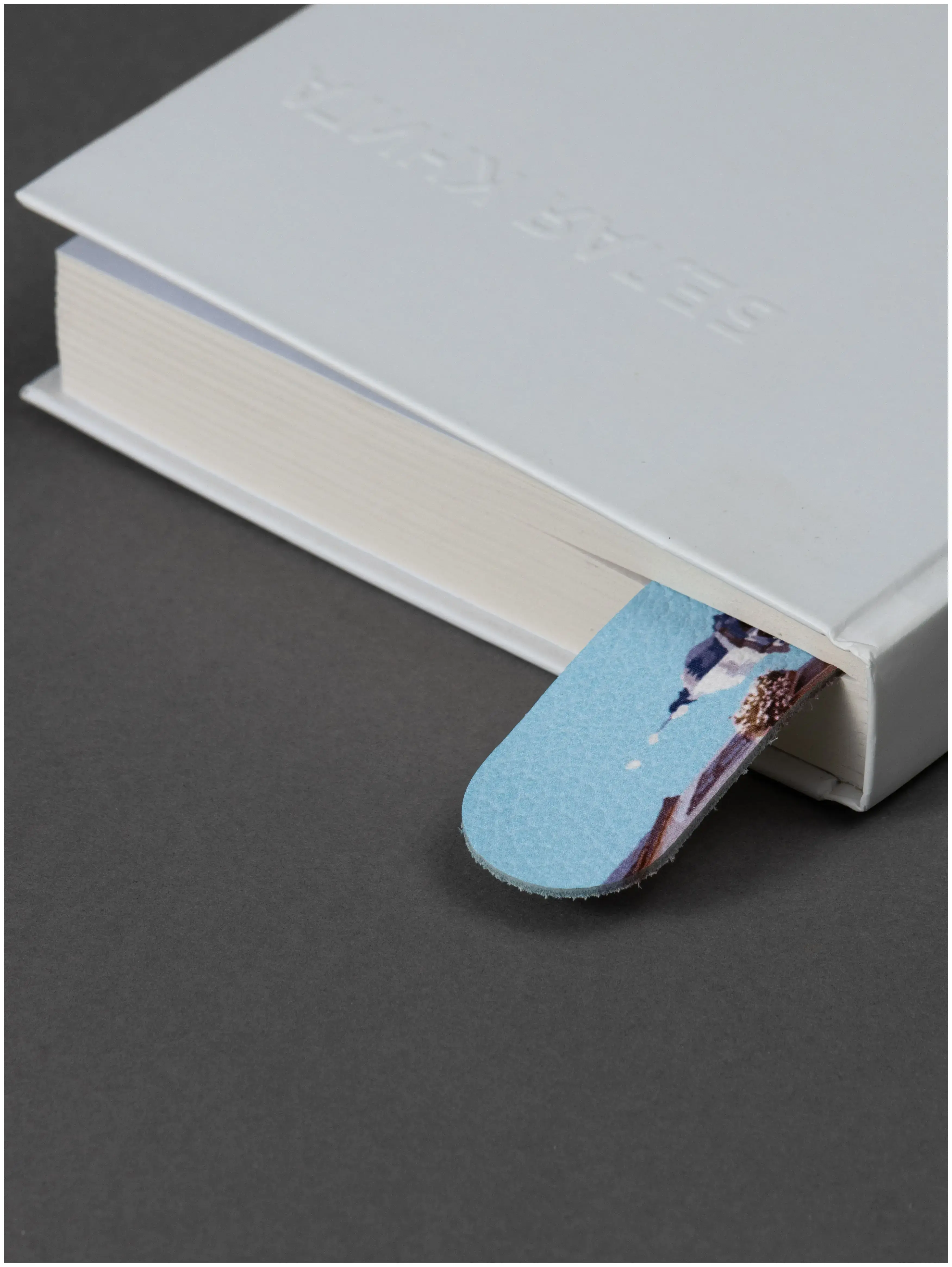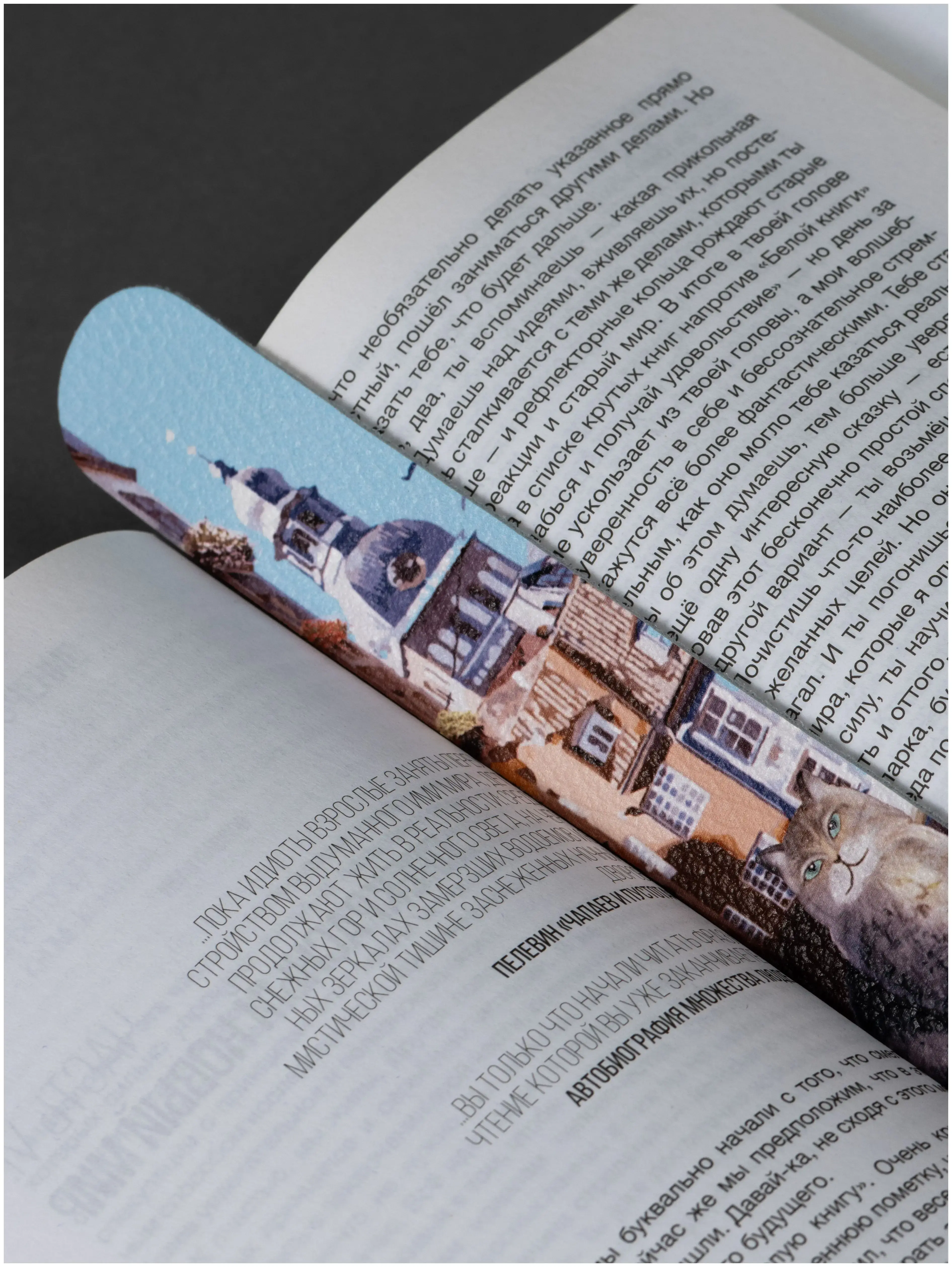 Закладка для книг из натуральной кожи, цветной рисунок по коже "Старая улица"